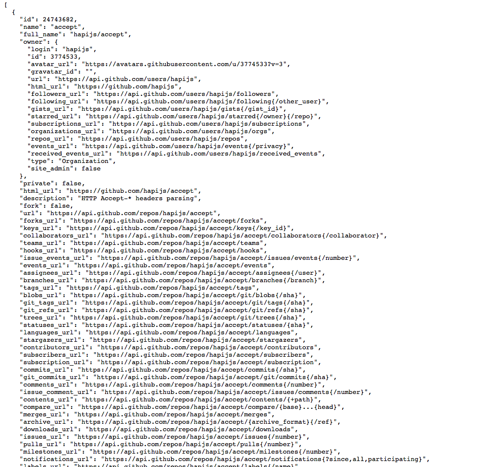 Explore the github API