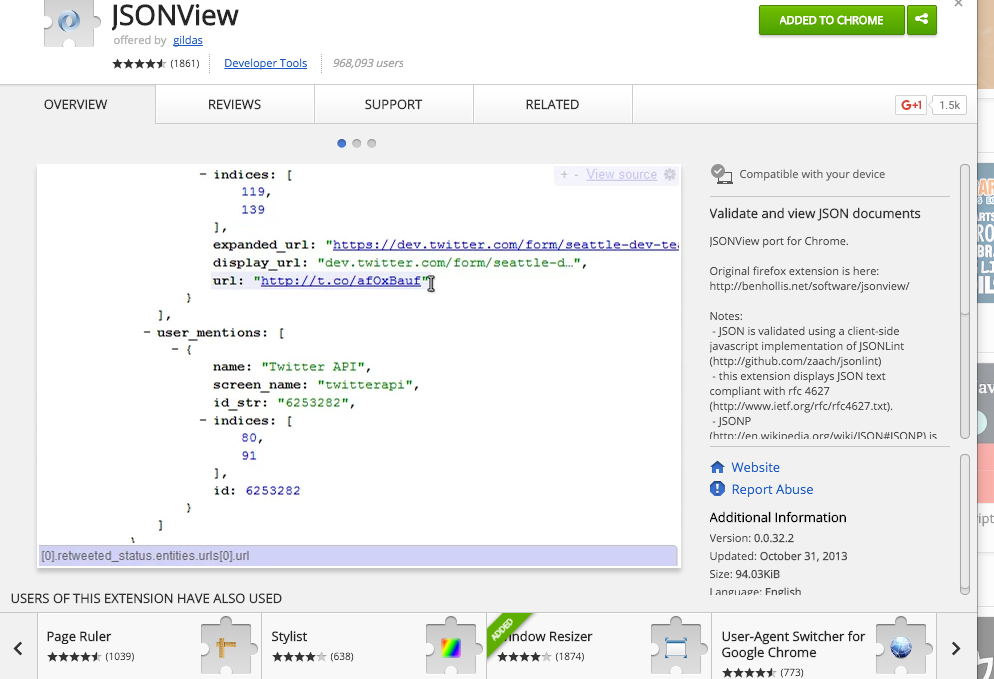 To install it, open the above page in chrome and click in the JSONView for Chrome link: