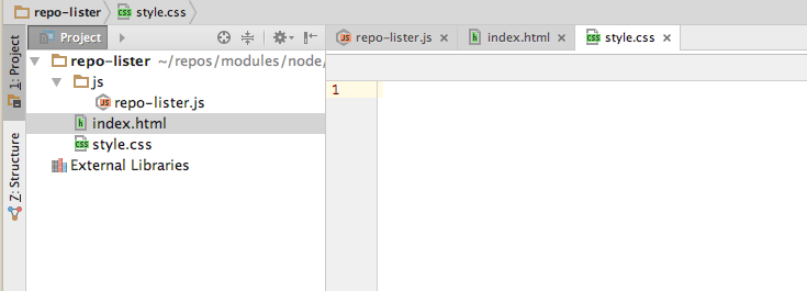 Create a new Empty Project in Webstorm called js-ajax-1 and create the following structure - with empty files as shown: