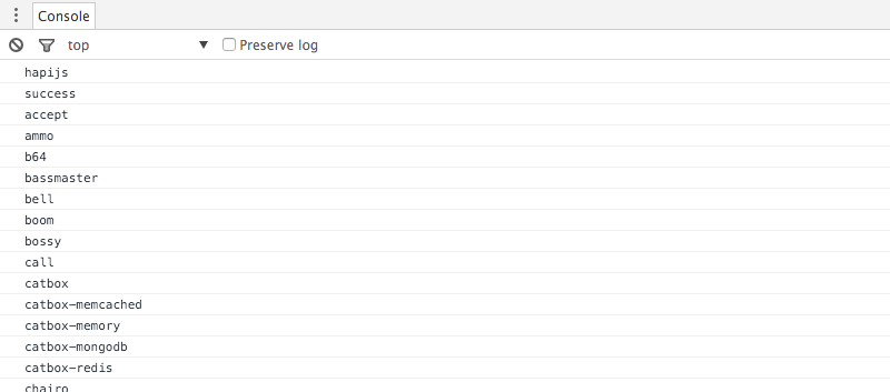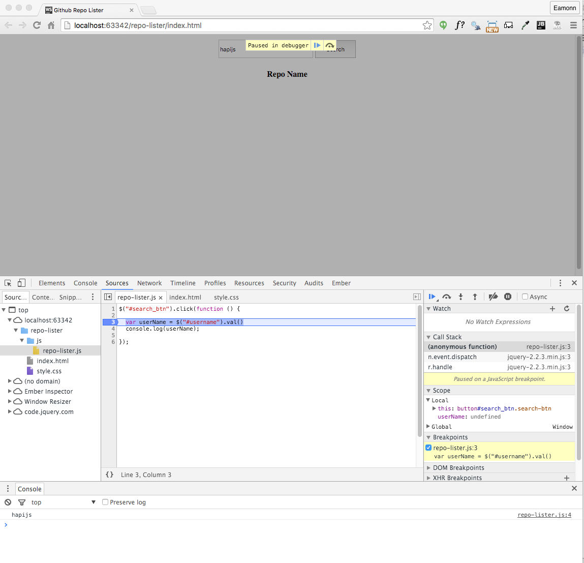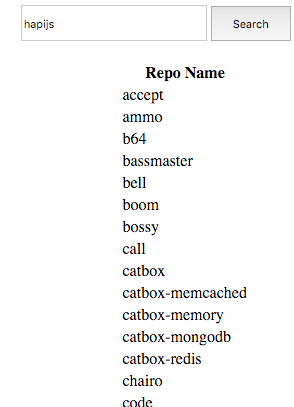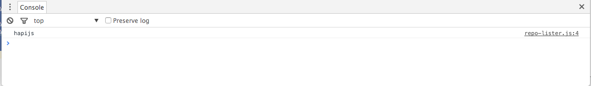Now enter the string hapijs into the text box and press search. You should see the string echoed in the console: