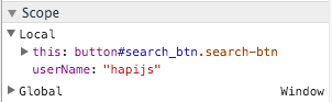 Notice how we can see the current value in the userName variable.