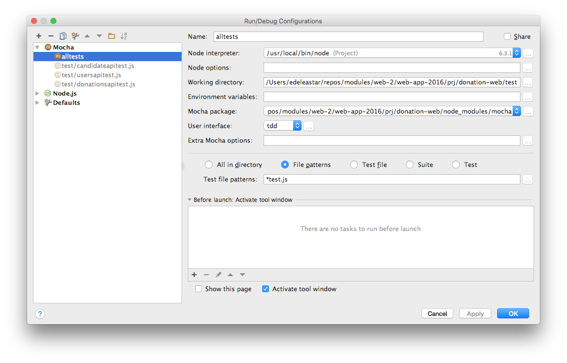 In the above, all the tests have been run collectively via a test file pattern configuration: